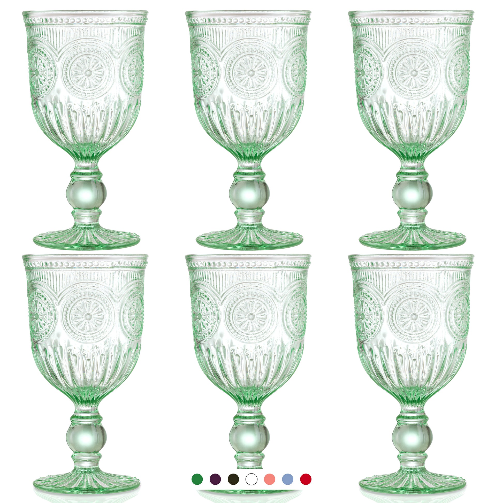 - Our green colored goblets are super strong and sturdy so they will stand up to any clumsy guest or the odd knock glassware inevitably gets when being loaded in and out of the dishwasher.
