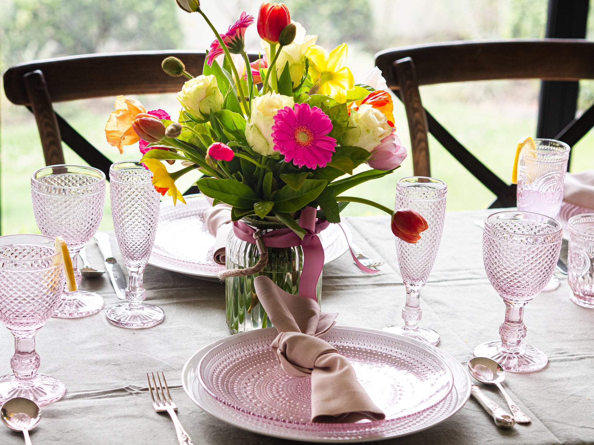 - Our Pink Glass Plates and Pink Wine Glasses are perfect for any occasion, from everyday use to fine dining events. Mix and match with our other pink glassware designs to create a romantic and sophisticated table scape that your guests will love.