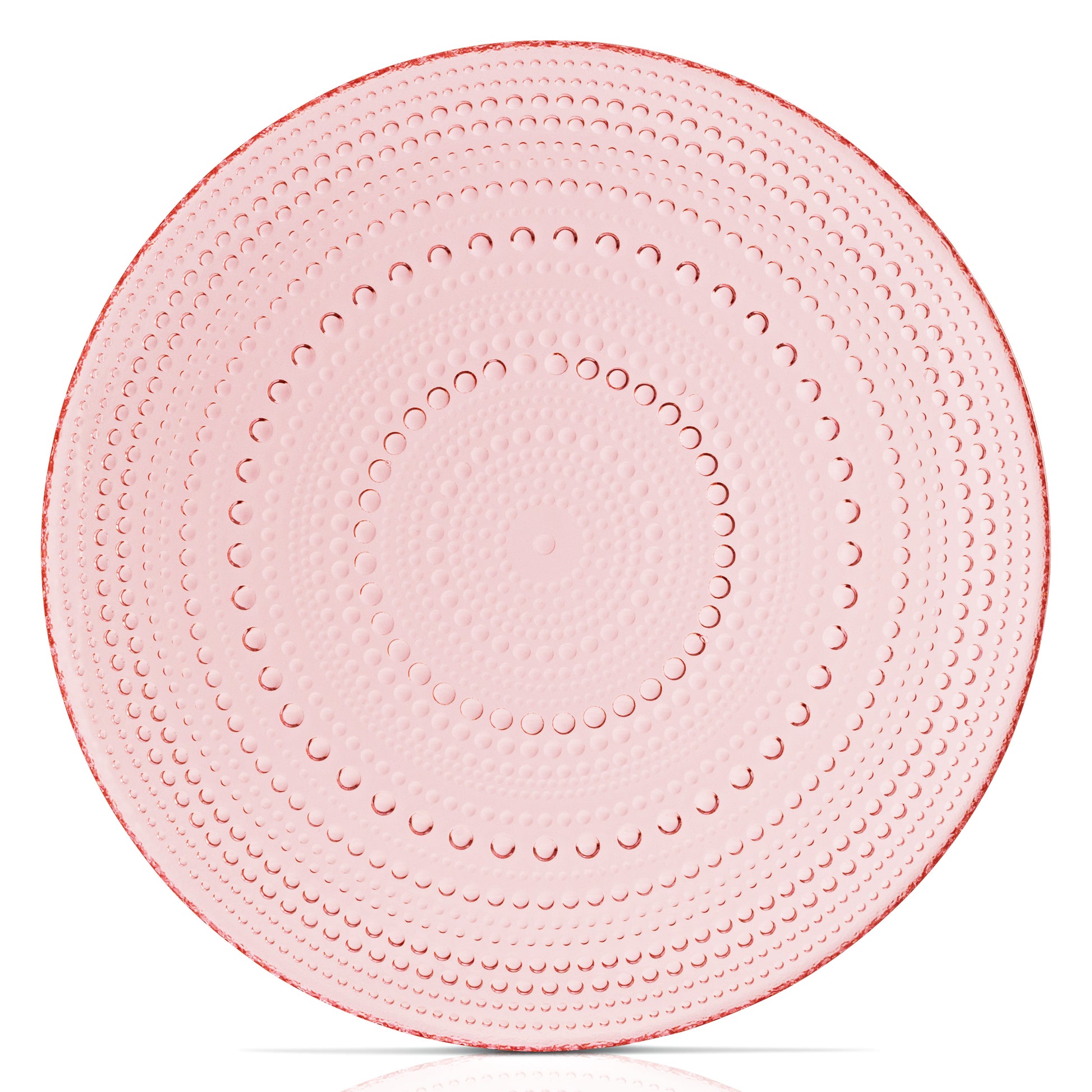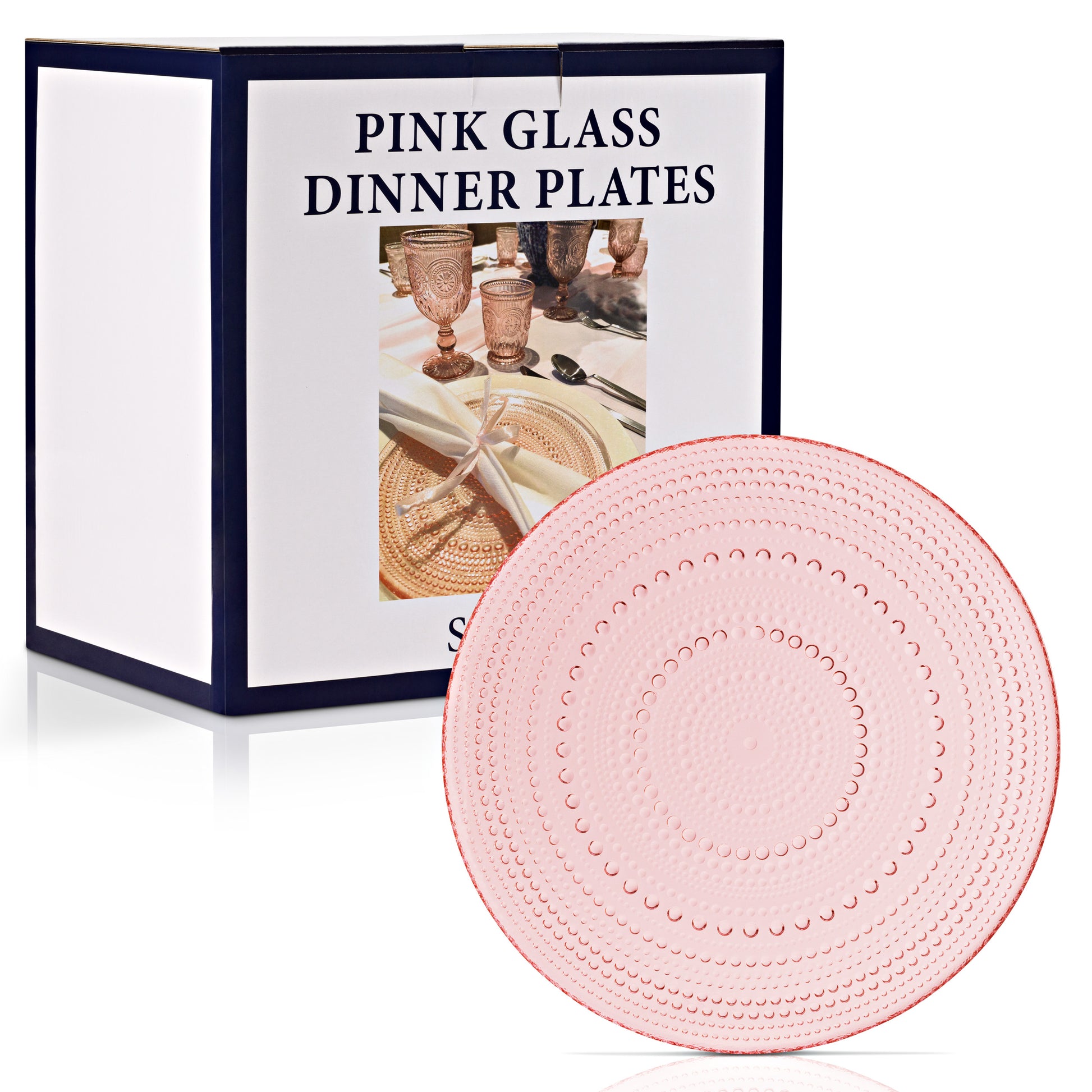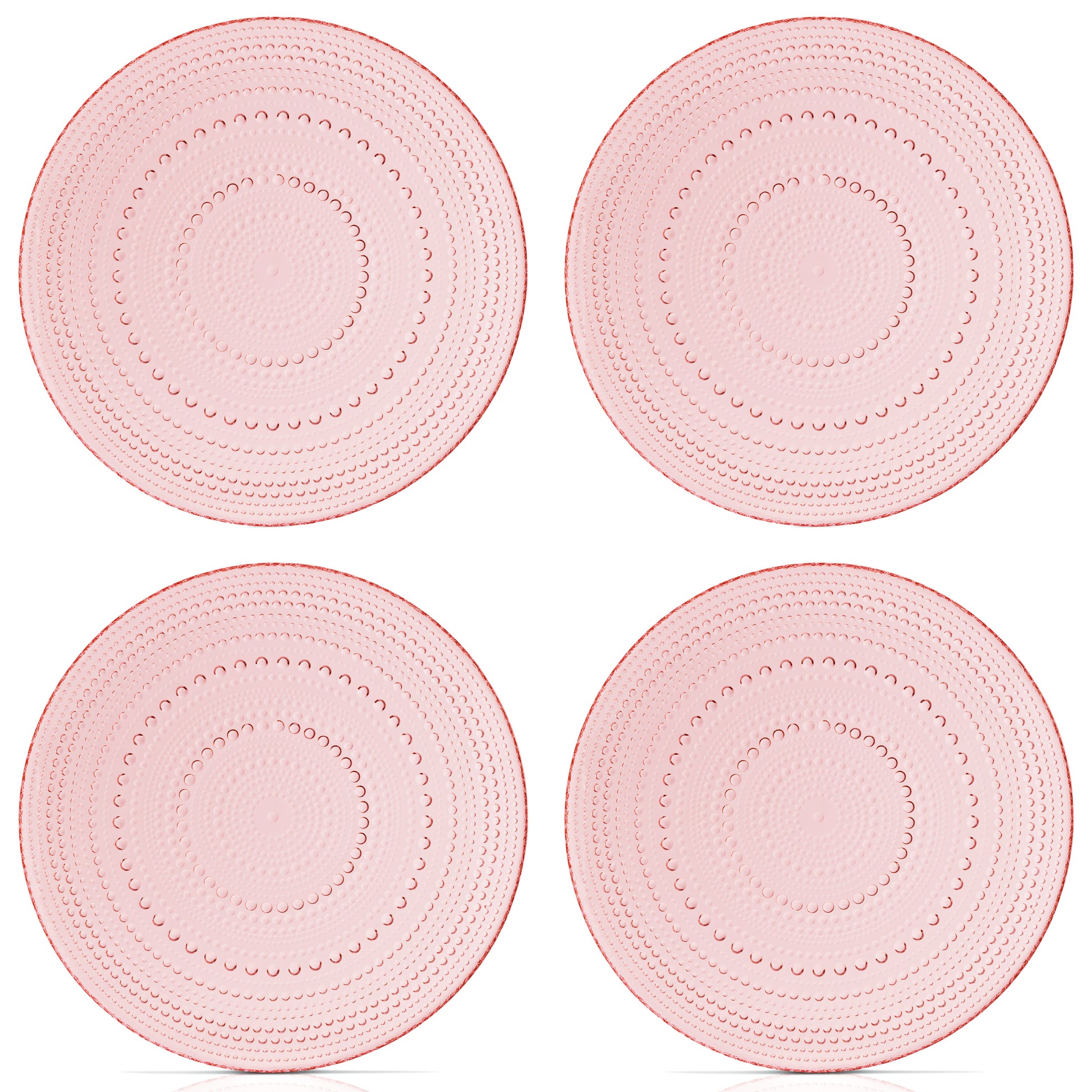 - VINTAGE DESIGN Hobnail Glass plates will create a romantic tablescape, match with our other pink glassware designs, wine glasses and water glasses. They are all made from a true pink color and are all dishwasher safe.