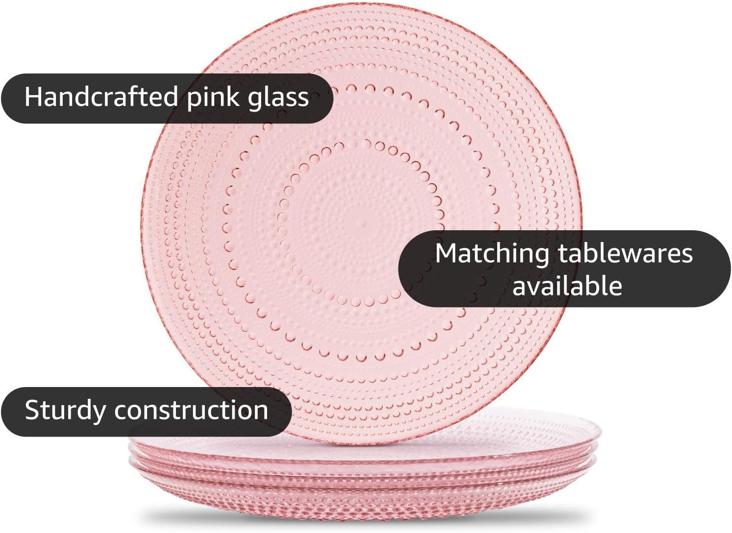 - VINTAGE DESIGN Hobnail Glass plates will create a romantic tablescape, match with our other pink glassware designs, wine glasses and water glasses; They are all made from a true pink color and are all dishwasher safe