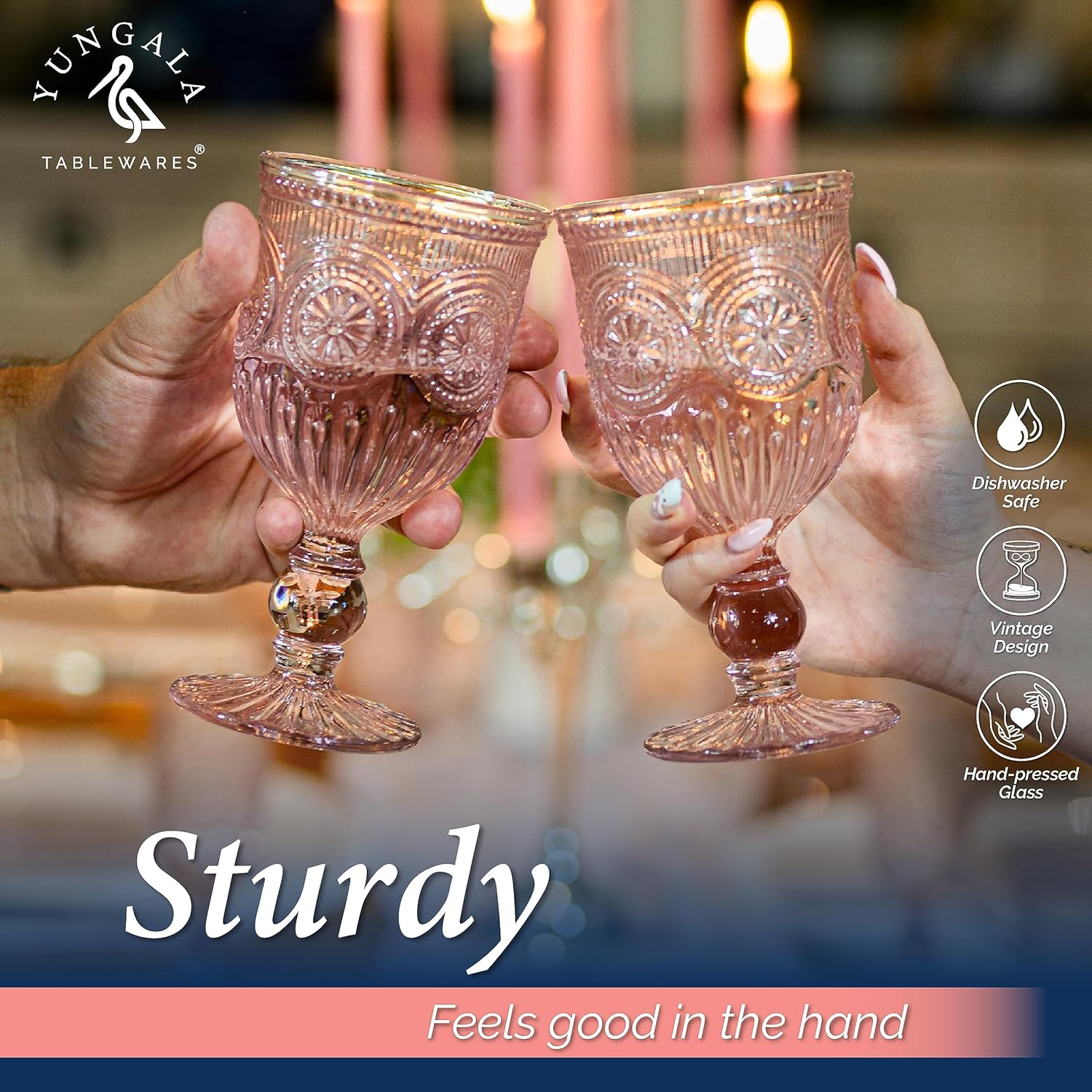 - Complete Vintage Set: This bundle includes 6 pink goblets and 6 pink water glasses, offering a coordinated, elegant look for parties, weddings, and special gatherings. Perfect for creating a stunning vintage-inspired tablescape.