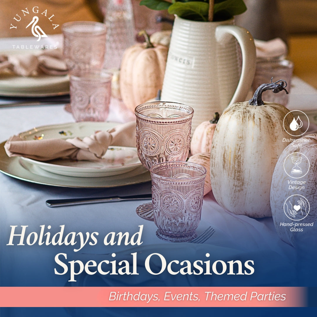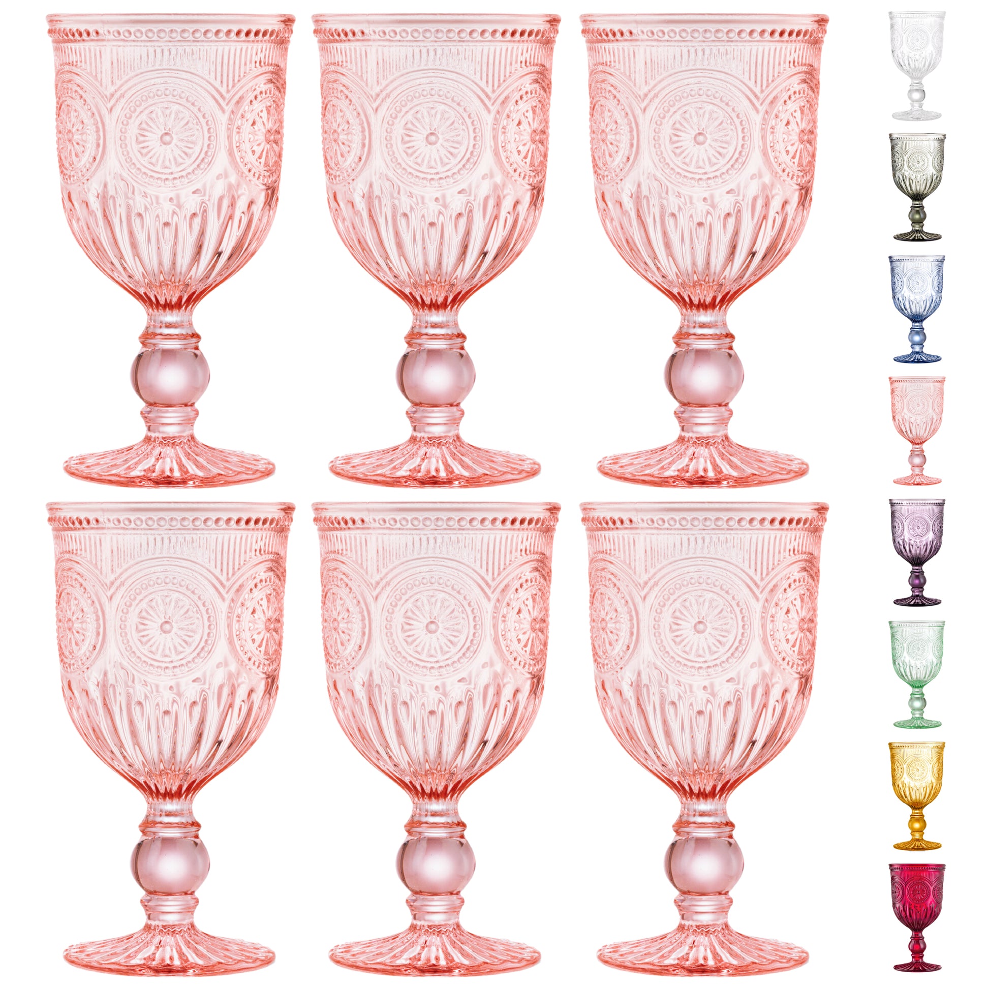 Vintage-inspired and beautifully embossed, these pink wine glasses feel elegant enough for weddings and special occasions, yet durable for everyday use.