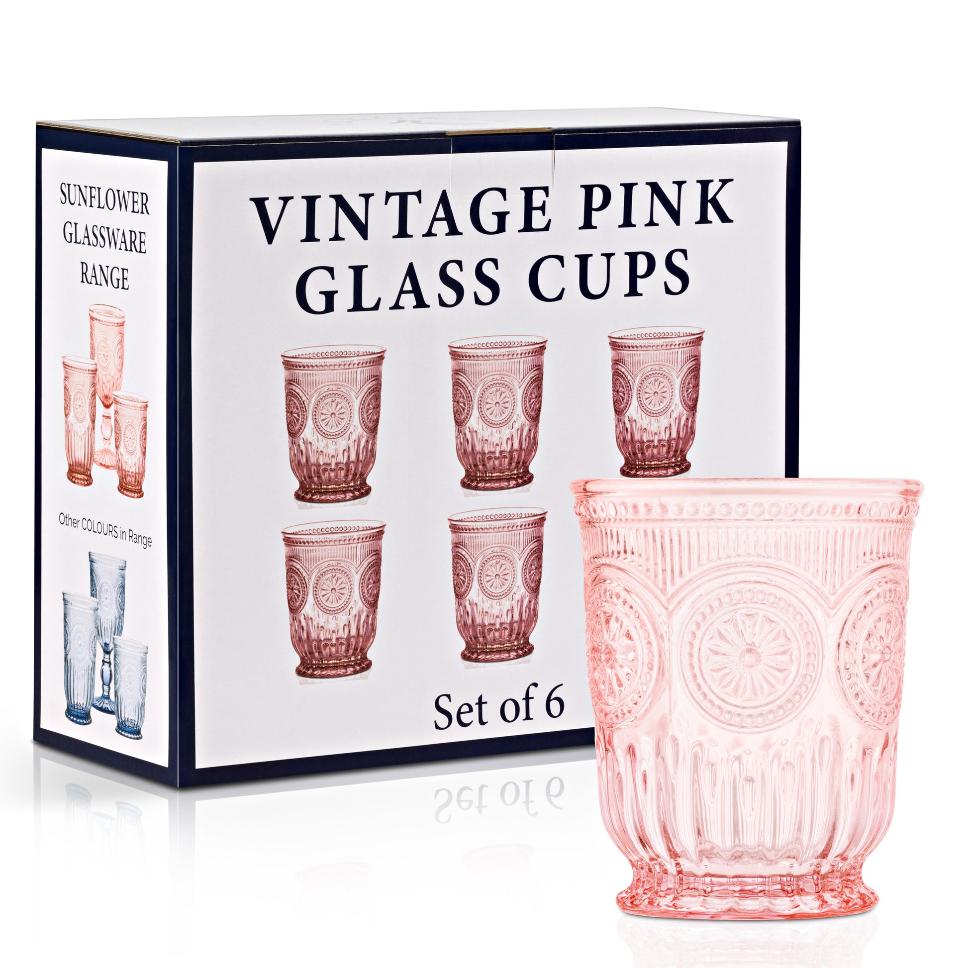 - Boxed and ready for gifting and packaged in thick polyfoam to ensure they arrive safely without breakages and also perfect for storing. We want you to fall in love with your vintage pink drinking glasses and if for any reason you are not satisfied return them in unused condition for a full refund. In the unlikely event the glass has been damaged before delivery just call for an immediate complimentary replacement.