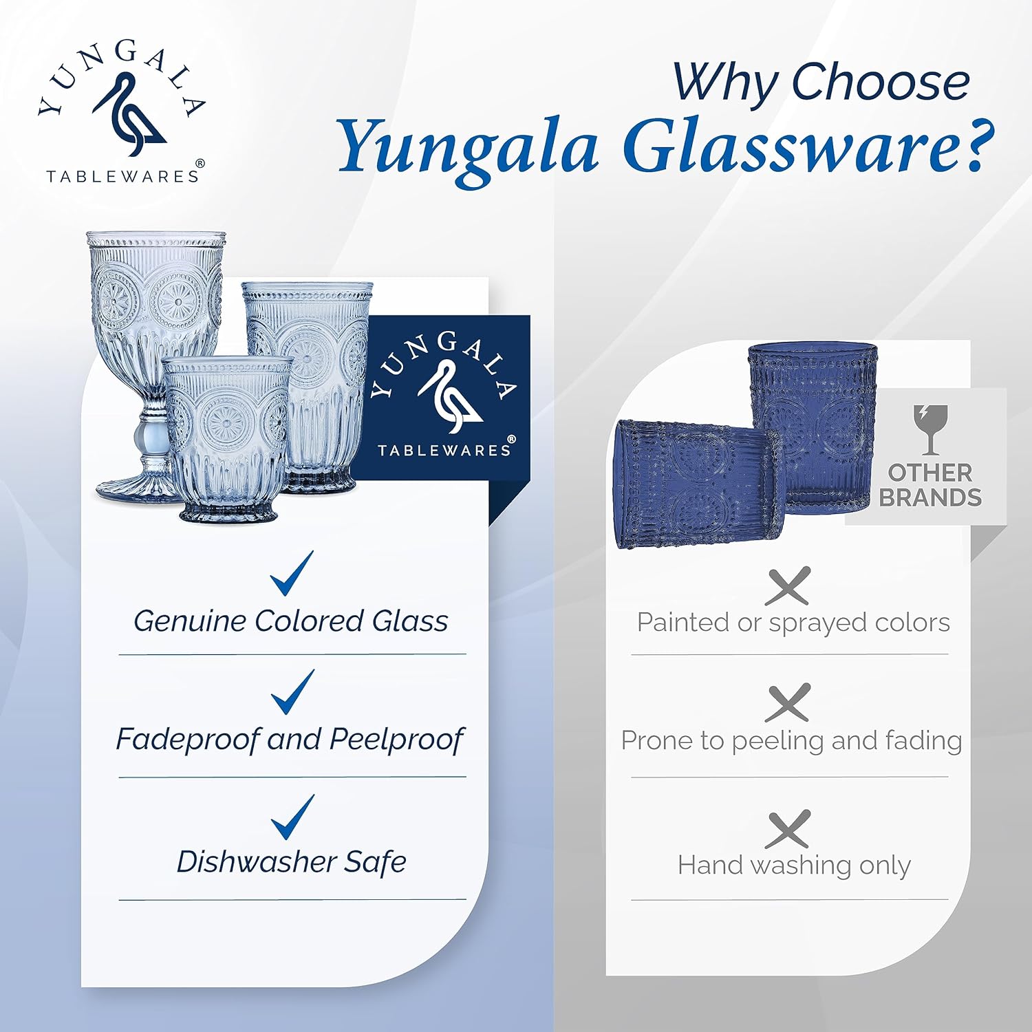 - Make your life easy with dishwasher safe colored glassware. Yungala blue glasses easily fit in your dishwasher and the color will never fade.